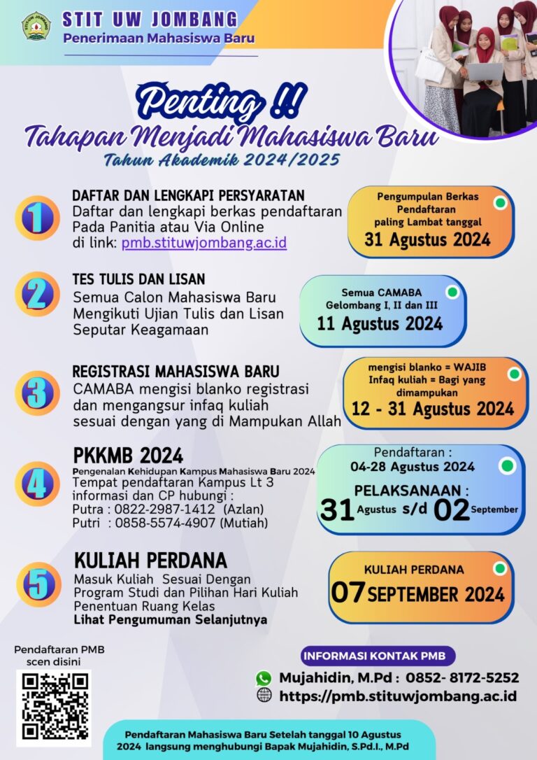 Jombang,- Hari ini, Minggu (11/08/2024) Sekolah Tinggi Ilmu Tarbiyah al Urwatul Wutsqo (STIT-UW) Jombang melaksanakan tes penerimaan mahasiswa baru (PMB) jalur mandiri. Pelakasanaan tes di laksanakan di gedung utama STIT-UW Jombang. Tes di ikuti oleh ratusan pendaftar dari 3 program…